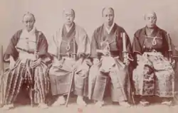 La primera misión militar francesa a Japón en 1867. Jules Brunet de frente, segundo a la derecha.