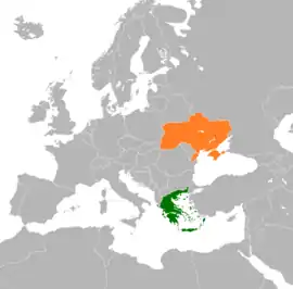 Grecia y Ucrania tienen lazos profundos debido al cristianismo ortodoxo y disfrutan de fuertes relaciones diplomáticas, debido al activo apoyo diplomático de Grecia a Ucrania durante la Anexión de Crimea por parte de la Federación Rusa.[1] Grecia también es uno de los principales partidarios de la entrada de Ucrania en la OTAN y la Unión Europea.[2] Grecia reconoció a Ucrania el 31 de diciembre de 1991. Ambos países establecieron relaciones diplomáticas en 1992. Grecia abrió una embajada en Kiev en 1993, se establecieron consulados generales en Mariupol y Odessa. Ucrania ha abierto una embajada en Atenas y desde abril de 2004 un consulado general en Tesalónica.[3] Ambos países son miembros de pleno derecho de la Organización para la Seguridad y la Cooperación en Europa y de la Cooperación Económica del Mar Negro. Hay una gran Comunidad griega viviendo en Ucrania (principalmente en las regiones del sur y este de la nación). Ucrania fue colonizada por primera vez por los griegos ya en el año 500 a. C. La ciudad ucraniana de Odessa (entre otras) fue fundada por antiguos colonos griegos, siendo también el lugar donde se fundó la organización secreta Filiki Eteria.