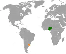 Las relaciones Nigeria-Uruguay son las relaciones exteriores entre Nigeria y Uruguay. Nigeria tiene una embajada en Buenos Aires, Argentina y el embajador está acreditado en Uruguay.[1] Uruguay tiene una embajada en Pretoria, Sudáfrica,[2] el embajador que es concurrente a Nigeria y un consulado honorario en Lagos.[3] En un futuro próximo, el embajador uruguayo en Angola estará a cargo de Nigeria.[4]