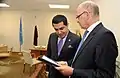 - Héctor Timerman presentando ante Nassir Abdulaziz Al-Nasser una denuncia por la militarización del Atlántico Sur hecha por el Reino Unido en Malvinas.