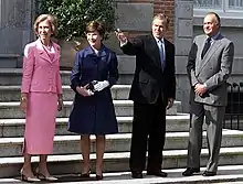 El 12 de junio de 2001, el 43 presidente de los Estados Unidos; George W. Bush inició su gira de países europeos en España. Tras pisar suelo español acudió al Palacio de la Zarzuela para reunirse con los reyes de España y después viajaría a la finca de Quintos de Mora en Toledo para reunirse con el presidente del Gobierno, José María Aznar.[12] Esta finca pasaría a ser bautizada como el rancho de Aznar. Posteriormente, celebrarían una rueda de prensa en los jardines de La Moncloa.