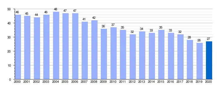 Gráfica de evolución demográfica de Relea de la Loma entre 2000 y 2020 |