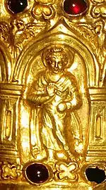 Material | Madera, oro y gemas incrustadas | |