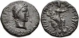 Sin embargo, se desconocen varias características de las monedas para las monedas de Azes: Tique en el reverso, el hecho de que al rey se le da el título de Dhramika en la inscripción en karosti en el reverso, y el hecho de que los monogramas y símbolos de la escritura karosti son los del último rey escita Kharahostes.[7]