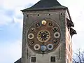 Uno de los relojes más famosos de este tipo es el Reloj Astronómico de Praga, República Checa, cuya parte central se completó en 1410. Otros magníficos relojes son los del Torrazzo de Cremona (que con sus 8 metros de diámetro es el más grande del mundo), Beauvais, Besançon, Estrasburgo, Berna, Venecia, Wells, Munster, Lyon, Lier,[2] Rostock, Hampton Court (Londres), Exeter, Olomouc, Gdansk, Lund, Brescia, Mantua, etc.[3]