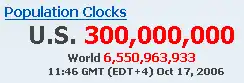 El reloj de población estadounidense y mundial presenta de manera continua (sus números se mueven) las aproximaciones de la Oficina del Censo de los Estados Unidos tanto de la población de los Estados Unidos como de la población mundial total. Dichas aproximaciones se basan en la última información censal disponible y en estimaciones de la población nacional, que se emplean en los algoritmos que muestran los números de estos "relojes".