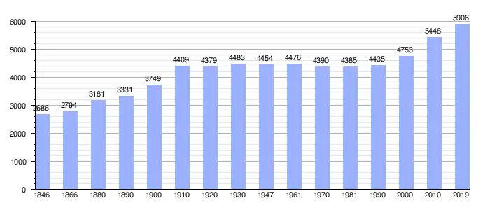 Todos los datos históricos relativos al actual municipio, el siguiente gráfico refleja su evolución demográfica, incluyendo municipios después de efectuada la fusión el 1 de enero de 1977.