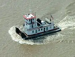El remolcador por empuje o empujador fluvial es aquel que, como su nombre lo indica, ejerce su misión empujando.