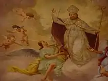 En las representaciones aparece anciano, sin pelo ni barba y a menudo se lo representa con otros obispos de la ciudad.