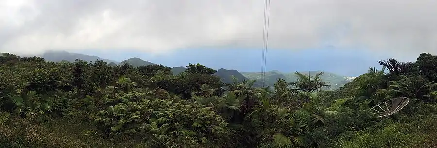 La reserva forestal Monte Santa Catalina es la más representativa de la selva tropical de tierras bajas y del bosque nuboso[5] montañoso aún más bajo, con su vegetación de zona alta de crecimientos de densos árboles que abarcan formaciones de palmas de Sierras, el bosque nuboso transitorio[6] y alto, y el bosque nuboso Elfin/Sierra palm, cargado de helechos, musgos y otras epifitas y típicos crecimientos mal desarrollados expuestos a altas elevaciones. En las bajas elevaciones protegidas, la reserva es relativamente madura, comparada con otras selvas tropicales de la isla (p.ej. Grand Etang y Annandale). El crecimiento secundario forestal de la selva tropical, anteriormente cortado, está claramente rodeando las cordilleras bajas de soporte y alrededor de la periferia de la reserva, con agricultura de variados tipos de árboles (particularmente, plantaciones agroforestales de nuez moscada y cacao) cruzando los límites de la reserva, principalmente en los lados de reserva que limitan con Victoriaville y Monte Home.