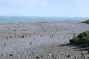 La zona alberga una colonia de pingüinos de Magallanes de aproximadamente 250.000 individuos. Es la pingüinera continental más austral del mundo y la segunda en tamaño poblacional del país.[3] En septiembre llegan a la zona los machos a ocupar sus nidos, generalmente el mismo del año anterior; luego llegan las hembras, se aparean, y en octubre la hembra pone usualmente dos huevos que serán empollados por ambos padres, por turnos, durante 40 días. En abril los polluelos ya están aptos para iniciar la migración hacia aguas del norte.