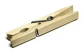 ![]() Resorte metálico espiral de torsión en una pinza para tender ropa |