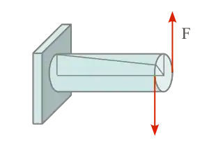 - La barra de torsión es una pieza prismática recta y rígida de metal o goma, que al ser retorcida absorbe la fuerza aplicada alrededor de su eje mediante tensión cortante cuando se ejerce un esfuerzo de torsión en alguno de sus extremos. De este principio también se deriva otro resorte más delicado, denominado fibra de torsión, que consiste en un alambre metálico o en una fibra de sílice, cuarzo fundido o seda tensada por el efecto de un peso, que puede retorcerse libremente sobre su eje, y que se usa en aparatos de medición muy sensibles como los péndulos de torsión.