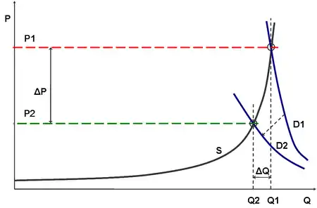Si se emplean medidas de respuesta a la demanda, la demanda se vuelve más elástica (D2), lo que resultará en un precio mucho más bajo (P2).
