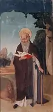 El cuerpo principal del retablo representa la flagelación de Cristo, atado a una columna. El panel superior izquierdo representa a San Antonio Abad. El panel inferior izquierdo representa la estigmatización de San Francisco de Asís. El panel superior derecho representa a San Juan Evangelista. El panel inferior derecho representa a San Antonio de Padua.