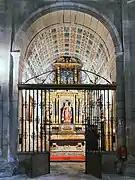 El retablo de las Candelas, obra del ensamblador Alonso de Freiría y cuyas trazas corresponden al platero Isidro de Montanos,[2] constituye el principal elemento ornamental de la capilla. La estructura se compone de un cuerpo con tres calles, banco y ático. El nicho central, de medio punto, está enmarcado por dos pares de columnas coronadas por capiteles corintios y decoradas con relieves en el tercio inferior, mostrando el resto fuste estriado en diagonal. Las hornacinas de las calles laterales, de forma rectangular, lucen sobre ellas frontones partidos clásicos rematados por un óvalo dorado en bajorrelieve, mientras que a un lado se halla un pilar idéntico a los que flanquean la hornacina central, coronada esta por un voluminoso frontón curvo. Este frontón se apoya en una prominente cornisa escalonada la cual descansa en la calle central sobre discretas ménsulas (de rocalla las de los extremos), apoyándose los tramos de las calles laterales en pequeñas peanas con forma de trapecio invertido.
