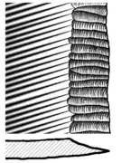 - Subparalelo: es un retoque habitualmente cuidado, con negativos de lascado alargados pero no exactamente paralelos. Suele asociarse al percutor blando o a la talla por presión.