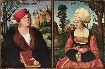 La representación de los cónyuges es del tipo retrato doble. Originalmente, probablemente era un díptico, que se cerraba como un libro, como lo demuestran no solo las dimensiones similares de ambas obras, sino también los escudos fragmentarios de los esposos en el reverso del retrato de Johannes, con joyas exquisitamente decoradas. Tipo de retrato común en el arte flamenco, este es sin embargo el primero conservado en tierras alemanas. El motivo de la creación de esta obra fue la boda de los retratados. Johannes Cuspinian, natural de Franconia, fue escritor, médico y erudito en la corte del emperador Maximiliano I; se sabe que en 1492 se trasladó a Viena, donde conoció a Anna Putsch, hija del tesorero imperial.
