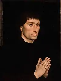 El retrato de medio cuerpo muestra a María Portinari (nacida en Florencia como Maria Maddalena Baroncelli en 1456) en una vista de tres cuartos girada a la izquierda.[1]Tiene unos rasgos algo nórdicos, y está vestida a la última moda de la alta sociedad flamenca. Está colocada contra un fondo liso, opaco y oscuro, con las manos unidas en oración. En los primeros retratos de Memling los fondos tienden a ser lisos y oscuros, como era invariablemente el caso en los trabajos de Jan van Eyck y Rogier van der Weyden, y favorecido en los círculos de la corte borgoñona. En contraste, los retratos posteriores de Memling serán puestos ante ricos interiores o paisajes enmarcados por columnas, como en su retrato de Benedetto Portinari, un hecho que ayuda a datar su trabajo.[2]