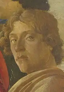 El historiador del arte Frank Zöllner discrepa de la identificación del modelo como Michele Marullo, pues ve un autorretrato de Botticelli al compararlo con el que aparece en la Adoración de los Magos.[7]