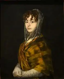 María García Pérez de Castro llamada por sus familiares "Sabasa" nació en 1790 en Madrid en el seno de una familia acomodada. Su tío fue Evaristo Pérez de Castro, también retratado por Goya.[1] Según una anécdota popular, el pintor conoció a la adolescente Sabasa en la casa de Pérez de Castro y, fascinado por su belleza, le pidió permiso a su tío para retratarla.[2] Según Serraller Sabasa tenía entonces 20 años, lo que sitúa la fecha de la creación de la pintura en la primera década del siglo XIX.[1] Natacha Seseña data el cuadro para 1820, año en el que Sabasa se casó con Juan Peñuelas.[2]