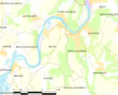 Rettel es una población y comuna francesa, en la región de Lorena, departamento de Mosela, en el distrito de Thionville-Est y cantón de Sierck-les-Bains.