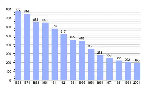 Gráfica de evolución demográfica de Rhêmes-Saint-Georges entre 1861 y 2001 |