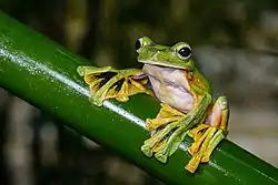 La rana voladora de Wallace o rana de Wallace (Rhacophorus nigropalmatus) es una especie de anfibio anuro de la familia Rhacophoridae. Esta rana habita en Tailandia, Malasia e Indonesia. Posee unos pies de enorme tamaño y muy palmeados, lo que le permite planear entre los árboles.[2]