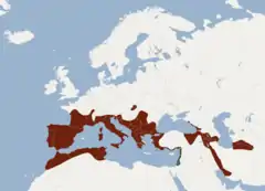 Se extiende desde la península ibérica, sur de Europa, Marruecos, Argelia y Túnez, Oriente Medio y sur del Cáucaso, hasta Turkmenistán. En Europa el límite septentrional, pasa por el centro de Francia, norte de Italia y noroeste de Rumania, no habita en zonas de alta montaña o muy áridas.