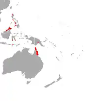 Se encuentra en el norte de Australia, Indonesia, Timor Oriental, Malasia Oriental, Papúa Nueva Guinea y las Filipinas.