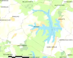 Rhodes es una población y comuna francesa, en la región de Lorena, departamento de Mosela, en el distrito de Sarrebourg y cantón de Sarrebourg.