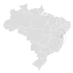 Se distribuye en el sureste de Bahía y noreste de Minas Gerais en Brasil.[7]