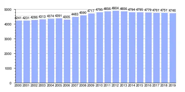 Gráfica de evolución demográfica de Rianxo (lugar) entre 2000 y 2019 |