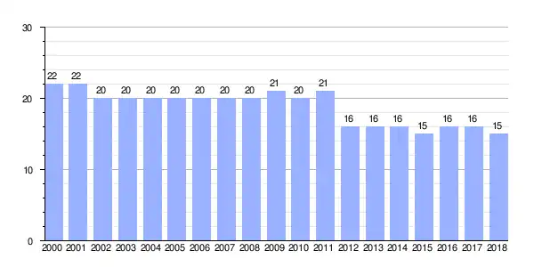 Gráfica de evolución demográfica de Riazoas entre 2000 y 2018 |