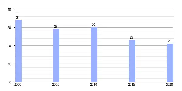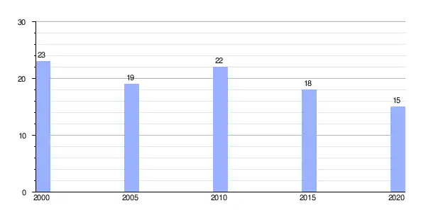 Gráfica de evolución demográfica de Ribón (aldea) entre 2000 y 2020 |