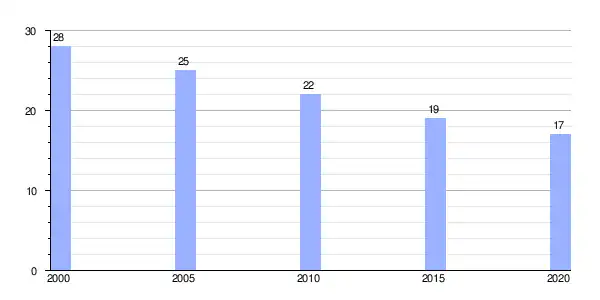 Gráfica de evolución demográfica de Ribas de Miño (aldea) entre 2000 y 2020 |