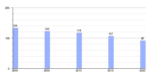 Gráfica de evolución demográfica de Ribas de Miño (parroquia) entre 2000 y 2020 |