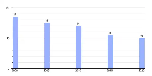 Gráfica de evolución demográfica de Ribas de Miño entre 2000 y 2020 |