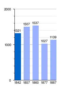 Según los censos de población de España, la evolución demográfica del concejo entre 1842 y 1887 fue la siguiente:
