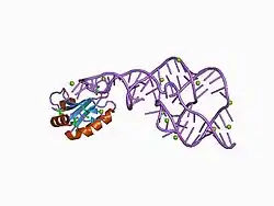 - Ferré-D'Amaré AR; Zhou K; Doudna JA (1998). «Crystal structure of a hepatitis delta virus ribozyme». Nature 395 (6702): 567-74. PMID 9783582. doi:10.1038/26912.