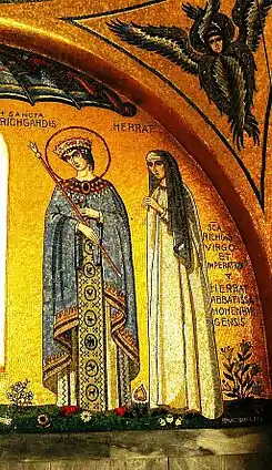 ![]() Mosaico mostrando a santa Ricarda a la izquierda | ||