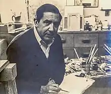 ![]() El artista trabajando en su estudio fotografiado en 1968 por Luis Corral Lacy | ||