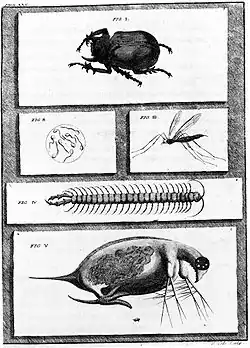 Insectos y animalículos de las aguas del Támesis, al microscopio por R. Bradley (plancha extraída de Philosophical Account of the Works of Nature