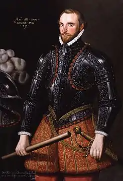 ![]() Retrato contemporáneo de Sir Richard Grenville, inscrito: An(no) D(omi)ni 1571 aetatis suae 29 ("En el año de Nuestro Señor 1571, a la edad de 29"). National Portrait Gallery, Londres. | ||