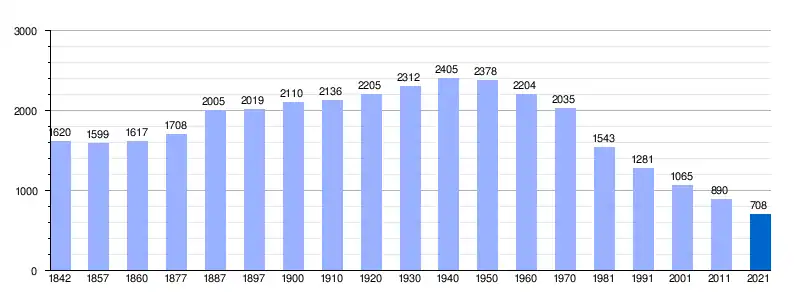 Población de derecho (1842-1991, excepto 1857 y 1860 que es población de hecho) o población residente (2001-2011) según los Censos de Población desde 1842. Población según el padrón municipal de 2021 del INE. |