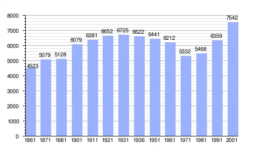 Gráfica de evolución demográfica de Rignano sull'Arno entre 1861 y 2001 |