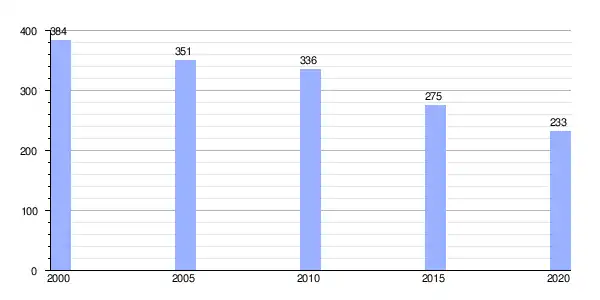 Gráfica de evolución demográfica de Rigueira entre 2000 y 2020 |