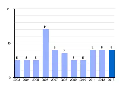 Gráfica de evolución demográfica de Rincón de los Reinas entre 2003 y 2013 |