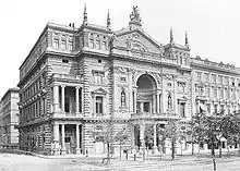 En octubre de 1872, un consorcio de tres personas obtuvo por resolución imperial la concesión de un "nuevo teatro estable en el Schottenring, frente a la Bolsa, con el nombre de Ópera Cómica (en alemán: 'Komische Oper') para representaciones teatrales de todo tipo y ballet". Se fundó una sociedad anónima para reunir el capital de construcción y explotación. La planificación y construcción se le encargó a Emil von Förster. Dado que sólo disponía de un terreno relativamente pequeño y el teatro debía albergar a 1.700 personas, buscó una expansión del espacio a lo alto, consiguiéndolo mediante una intrincada disposición de vestíbulos, pasillos y escaleras. La Komische Oper, que debía representar óperas "ligeras" como contrapunto a la Ópera de la Corte (en alemán Hofoper), se inauguró el 17 de enero de 1874 bajo la dirección de Albin Swoboda con El barbero de Sevilla de Rossini.