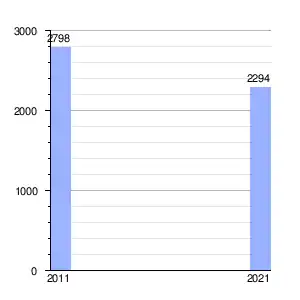 Gráfica de evolución demográfica de Rio de Couros e Casal dos Bernardos entre 2011 y 2021 |